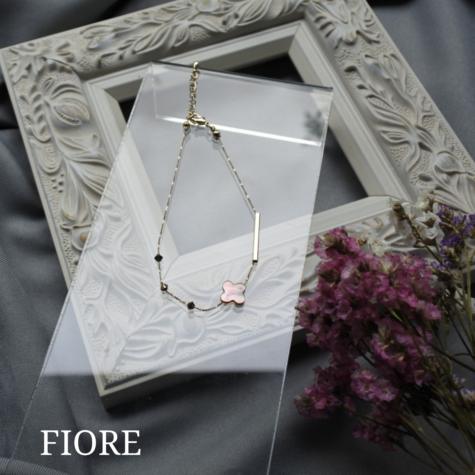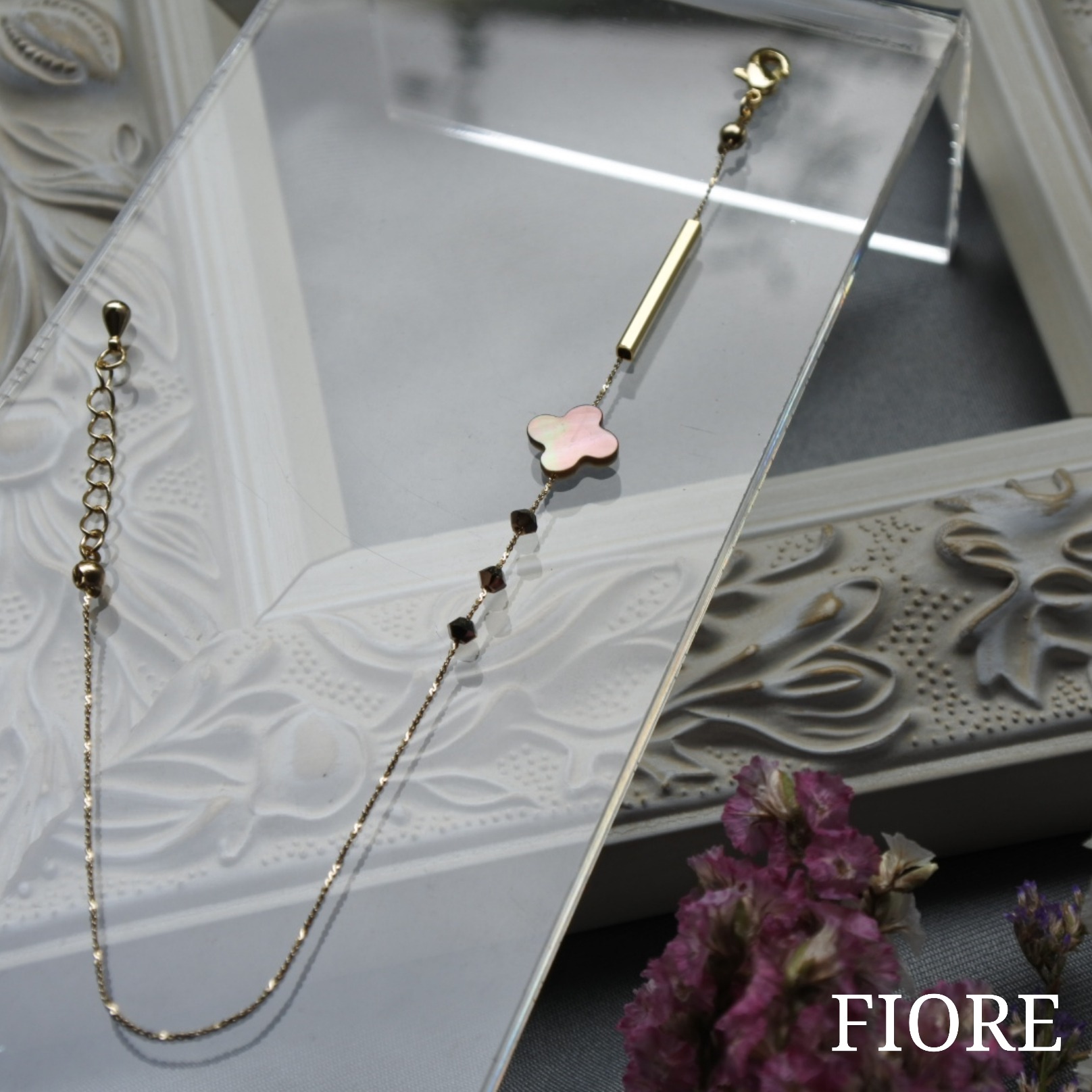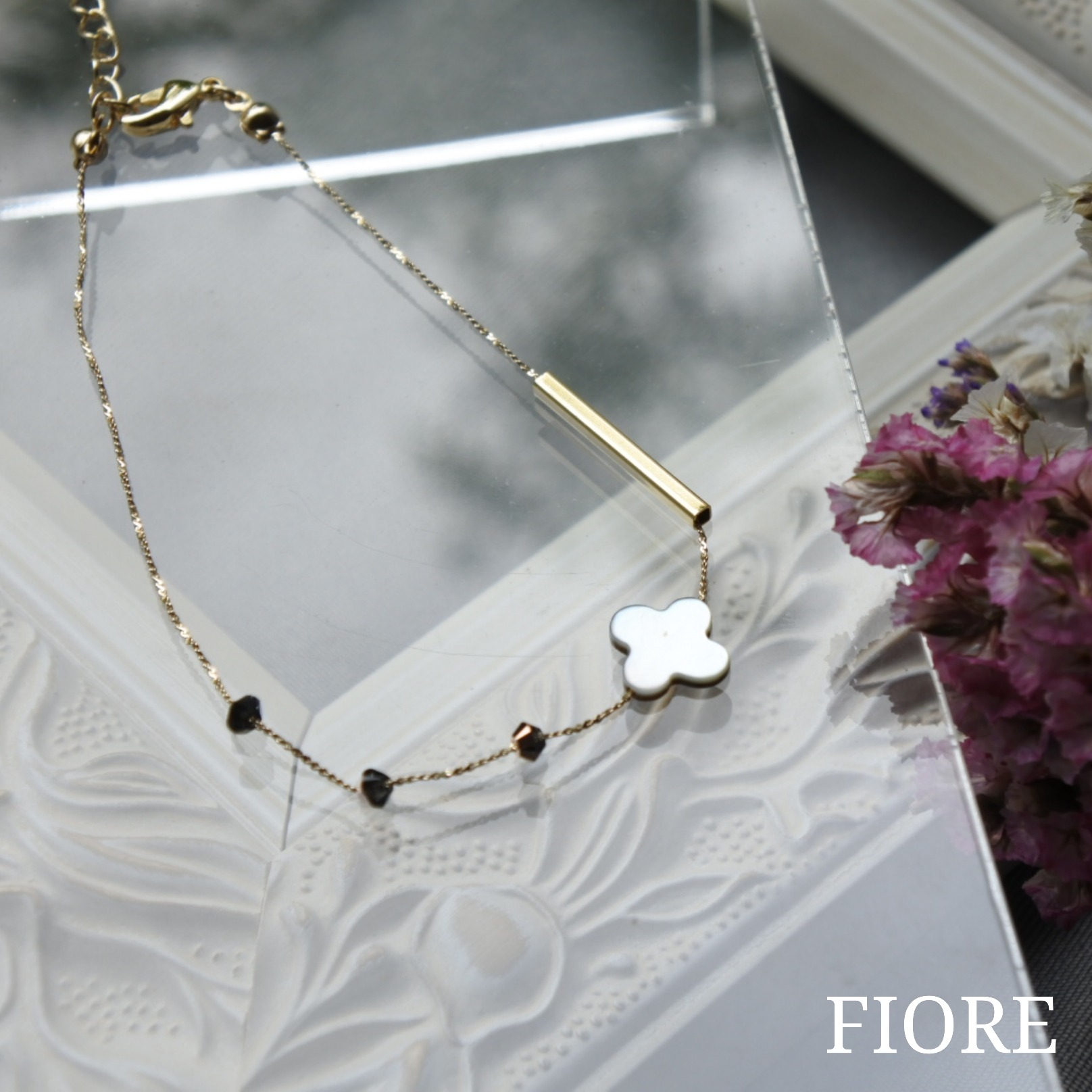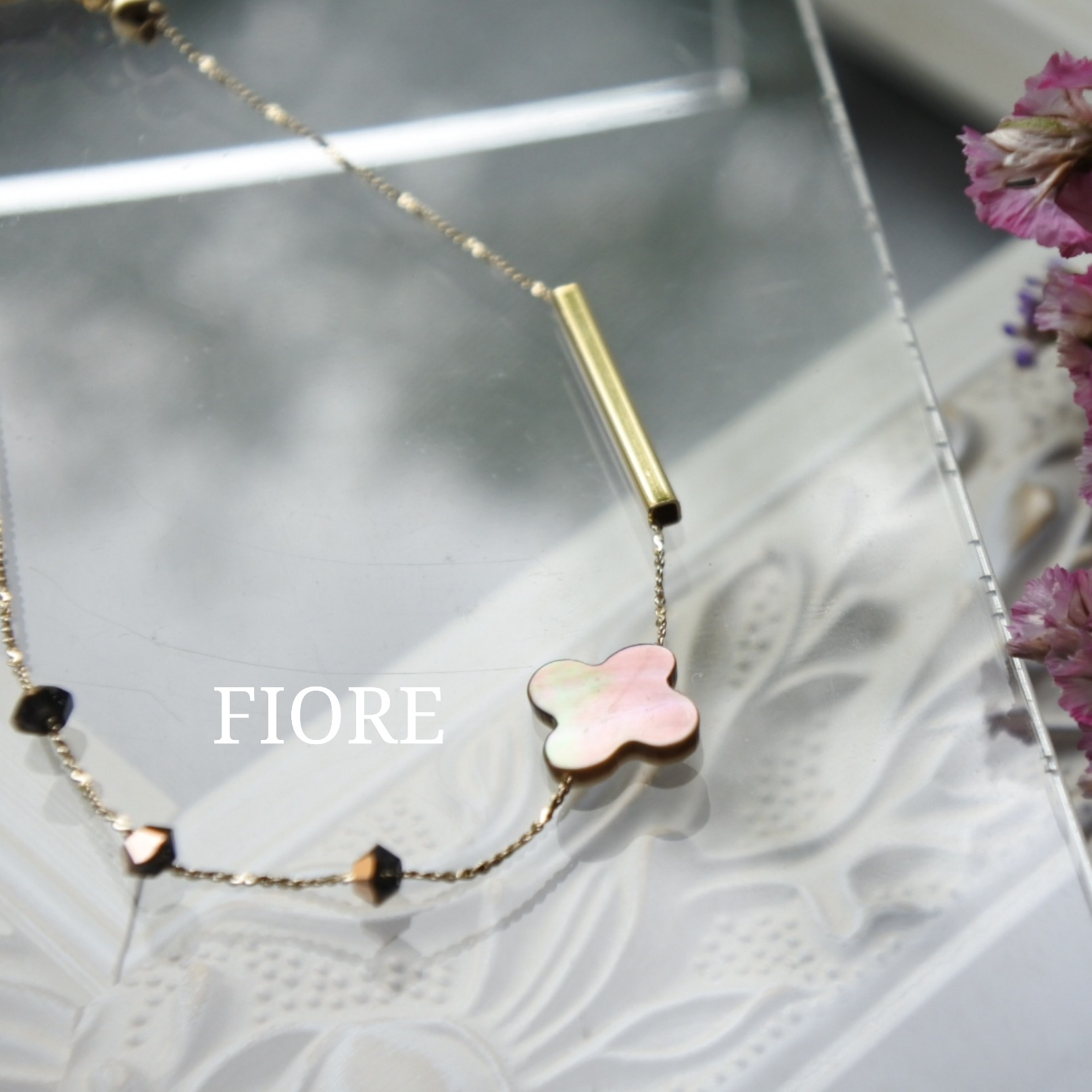 お花の形の蝶貝チャームは