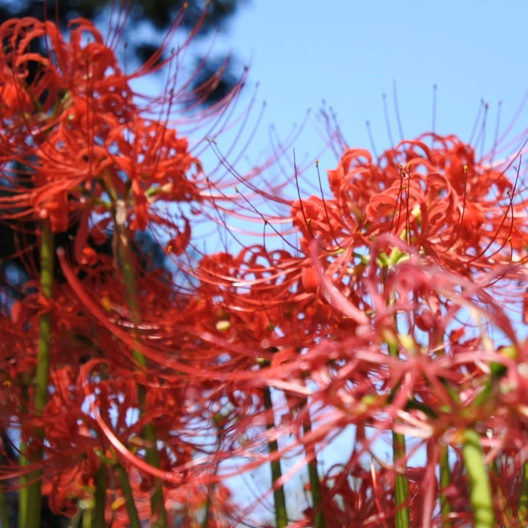 ご近所にヒガンバナが群生している神社があります