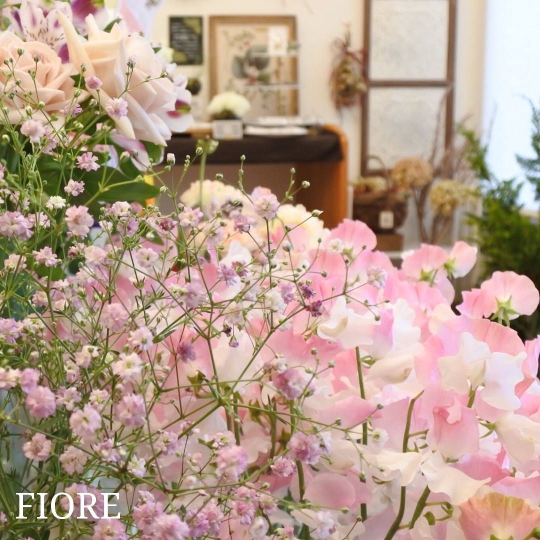 カスミソウのマイピンク、スイートピーなど
